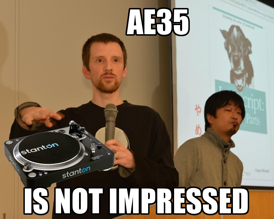 その後、僕は以下のの2つの画像を作って、Twitterで投稿した。AE35はエレクトロのDJなので、一つは俺が作っている音楽に不関心のような意味を出そうとした。